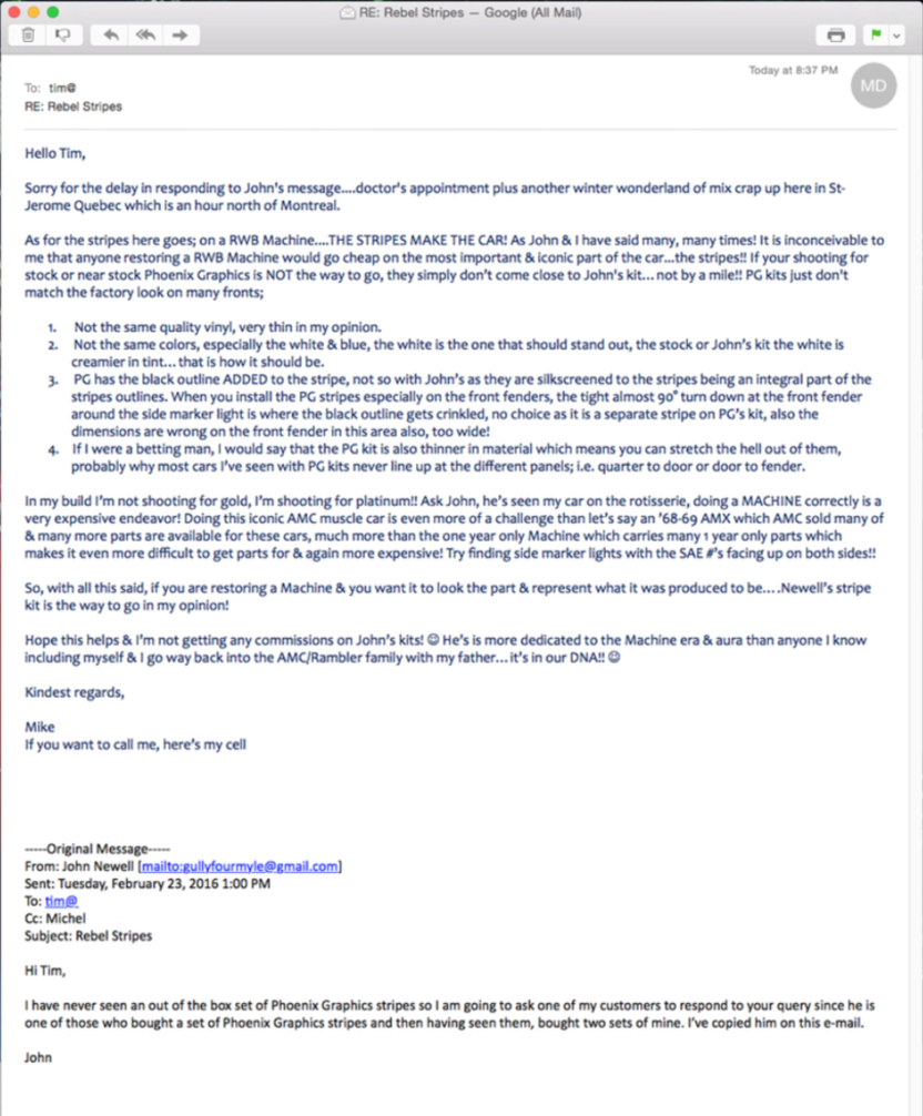 Ordering Newell Rebel Machine Stripe Kits