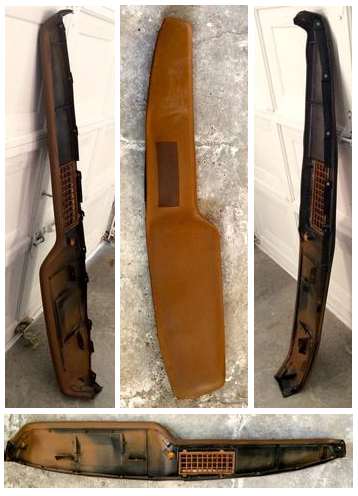 A one piece dash pad in pretty reasonable shape. It has cracks in the usual places in the dash chassis and needs new foam thanks to sun and age. No splits in the pad itself though.
