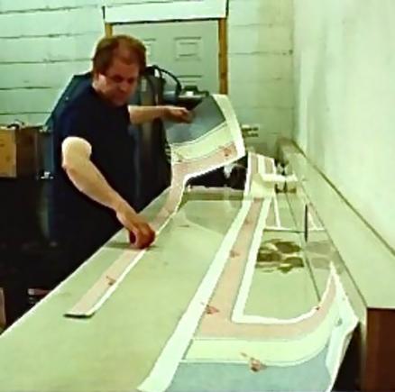 The stripes were die-cut in 1969 and now they are cut by a computer-driven knife blade. In 1969, they would have had material shifting in the dies. You can't see well through the pre-mask so placing it exactly in the dies must have been a challenge.